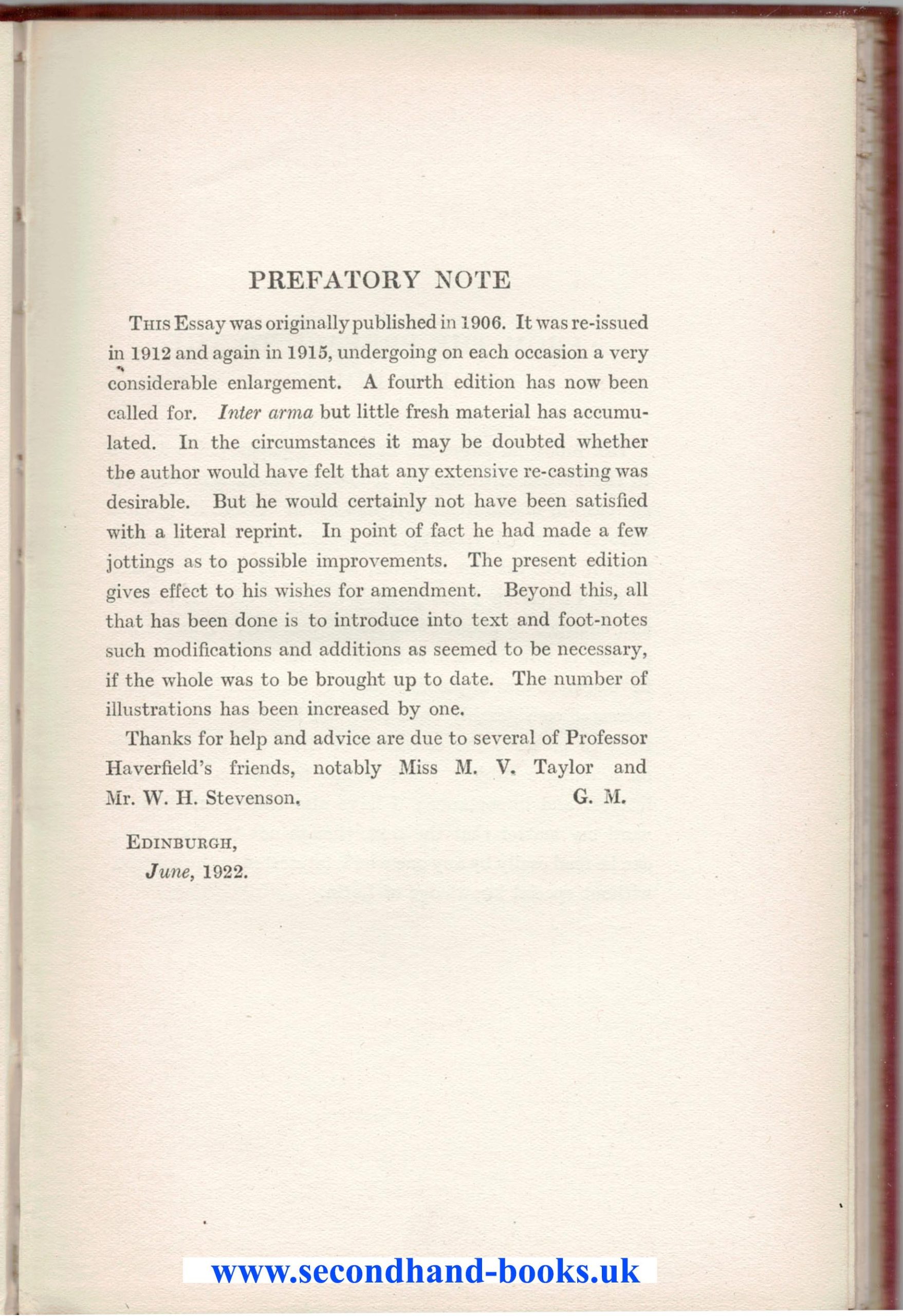 This 1923 version of the original essay published in 1906 holds some additional material from the notes of Haverfield compiled into this 4th edition which looks at the Romanization of Roman Britain through language, material civilisation, art life and government and most importantly religion.